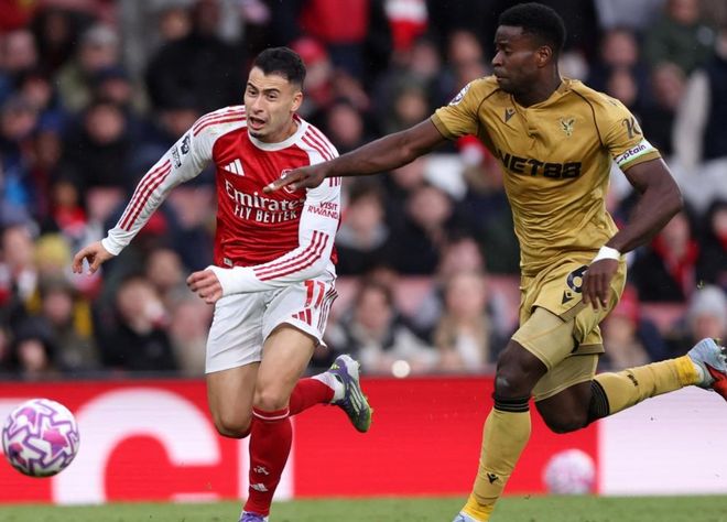 第68分钟,加布里埃尔抢点头球,结果自己撞到了立柱。第79分钟,马特塔禁区内包抄射门踢飞了。最后时刻水晶宫派上了莱尔马、索萨和乌切,但都没有任何作用。最终,阿森纳1-0击败水晶宫。阿森纳各项赛事豪取7连胜。阿森纳无疑是英超夺冠最大热门,9场7胜,狂揽22分,把曼城和利物浦远远甩开。
