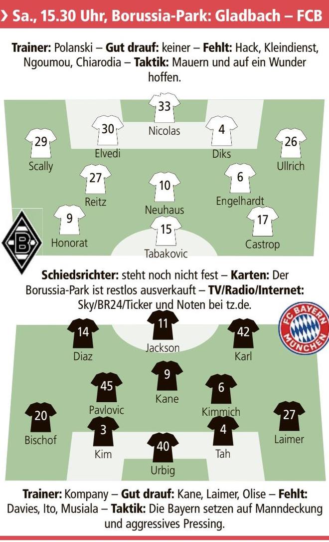拜仁客战门兴:凯恩、雅克松首发,格雷茨卡、乌尔比希出战