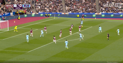 第44分钟,威尔逊门前头球得分,比分被扳平,西汉姆联1-1伯恩利